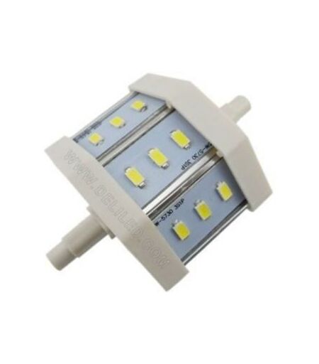 Ampoule Led à double culot R7S , de forme crayon , de puissance 5W équivalente à 50W en halogène , elle existe en 3 couleurs du Blanc (2800°K-6500°K) équipée de plusieurs puces SMD . Il s'agit d'une ampoule linéaire , qui s'installe horizontalement avec un angle de diffusion large de 200° pour que la lumière se répartisse d'une façon homogène. Utilisée souvent pour les projecteurs extérieurs . ...