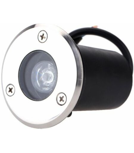 Spot encastrable au sol, fonctionnant en 12 volts et d'une puissance de 1x1W. Dimensions du produit : ø65x80mm et dimensions d'encastrement : ø40mm. ...