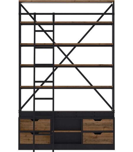 Rendez-vous Déco - Bibliothèque 160 cm en bois et métal avec échelle, 4 tiroirs - kasi