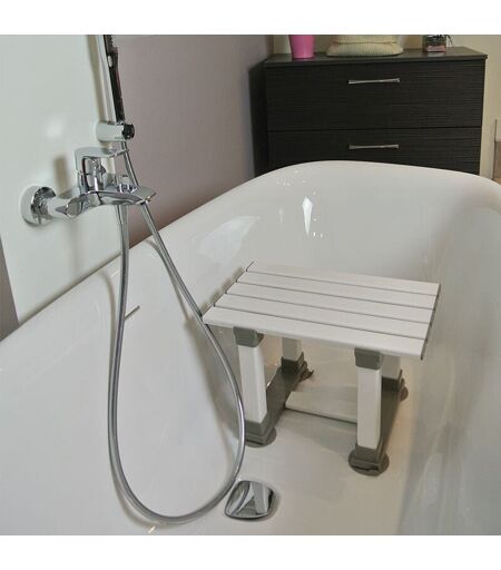Ce siège de bain Sicile, robuste, se positionne au fond de votre baignoire pour vous donner une assise plus haute. Il vous permet d'être confortablement installé et de vous relever plus facilement. Son assise à lattes permet à l'eau de s'écouler rapidement. Fixation par 4 larges ventouses. Largeur hors tout entre les 2 ventouses 32,5 cm. Garantie 2 ans. Dimensions assise : larg. 45 x prof. 29 cm. 2 hauteurs d'assise au choix : 20 ou 30 cm. Poids maximum autorisé 190 kg. ...