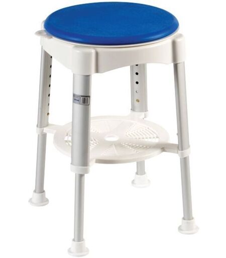 Le tabouret de douche pivotant Santorin permet de prendre une douche confortablement installé. Grâce à son assise pivotante à 360°, vous éviterez les contorsions difficiles. L'assise est souple et rembourrée pour votre confort. Il est également équipé d'un petit plateau pour poser vos produits et les avoir toujours à portée de main. L'assise pivotante est amovible pour faciliter le nettoyage. Dimensions hors-tout : Larg. 38 x prof. 38 x haut. 41 à 58 cm. Dimensions de lassise : Diamètre 36 cm x haut. 2 cm. Poids 3 kg. Poids maximum autorisé 135 kg. ...