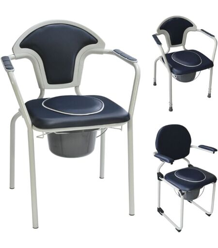 Notre chaise de toilettes Caraïbes vous garantit un très grand confort d'utilisation grâce à son assise mousse très épaisse et sa forme d'accoudoirs. Assise avec bouchon très facile à enlever tout seul. Seau amovible par le côté ou par le dessus. Assise entièrement amovible pour le nettoyage. Structure acier époxy gris et revêtement PVC imperméable. Coloris bleu marine. Modèle standard : Dimensions hors-tout: larg. 60.5 x prof. 44 x haut. 86 cm. Dimensions assise: larg. 44.5 x prof. 36 x haut. 49 cm. Haut. dossier 42 cm. Poids 6.6 kg. Modèle hauteur réglable : Hauteur d'assise réglable de 46 à 62 cm, hauteur totale 86 à 97 cm. Poids 6.8 kg. Modèle pliante : Dimensions hors-tout : larg.57,5 x prof. 50 x haut. 97 cm. Poids 9,4 kg. Dimensions assise : larg. 45 x prof. 40 x haut. 54 cm. Hauteurs accoudoirs 74 cm. Garantie 2 ans. Résistance 130 kg. ...