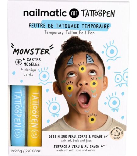 Nailmatic - Coffret Duo Tattoopen 2 Feutres Tatouage Temporaire & 4 Cartes Modèles Monster