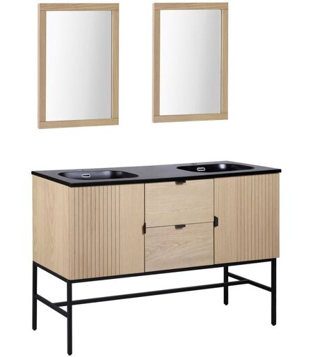 MOB-IN Meuble double vasque 140cm chêne STUDIO sur pieds + miroir carré
