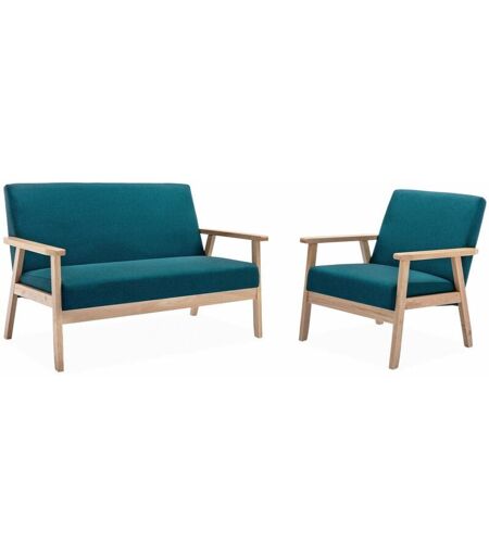 ALICE'S GARDEN Banquette et fauteuil 3 places en bois et tissu. Isak. L 114 x P 69.5 x H 73cm Polyester Bleu pétrole