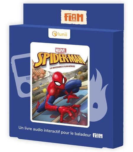 INCLUS : 22 chapitres qui s'enchaînent pour raconter toute l'histoire de Spider-Man. Plus de 2h30 pour les 7 ans et plus. 10 badges à collectionner lors de l'écoute qui célèbrent les grandes étapes de la vie de Peter Parker. TISSEZ VOTRE TOILE ! Peter Parker est un lycéen ordinaire jusqu'au jour où une mystérieuse araignée lui transmet d'incroyables super-pouvoirs. Peter découvre alors qu'il peut sauter très haut, s'accrocher aux murs et escalader d'immenses bâtiments sans difficulté. Mais que faire de ces nouveaux dons ? Un grand pouvoir implique de grandes responsabilités... COMMENT CA MARCHE ? Ouvrez votre coffret et récupérez votre code unique de téléchargement. Scannez le QR code et validez l'ajout du livre audio à votre Bibliothèque. Transférez votre livre audio par câble ou via Wi-Fi sur FLAM. UNE INTERACTIVITÉ INÉDITE : Épopées fantastiques, mystères, mangas audio, enquêtes historiques... Chaque livre audio FLAM propose des interactions inédites à écouter sur le baladeur audio des 7-11 ans. FLAM (non inclus) : Après Ma Fabrique à Histoires, Lunii continue d'accompagner vos enfants avec des aventures audio toujours plus immersives. FLAM propose une expérience audio inédite, avec un écran non-tactile pour une navigation interactive. ...