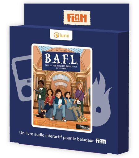 INCLUS : Une aventure interactive de près de 2h30 pour les 9 ans et plus, avec la possibilité de choisir son enquête, son agent et de collectionner les oeuvres du Louvres à travers ses missions. PARTEZ EN MISSION ! Au Louvre, les agents du B.A.F.L se démènent pour résoudre les petits et grands tracas des visiteurs. Et ils vont avoir fort à faire : une actrice a disparu d'un tournage, une petite fille cherche désespérément des licornes, un auteur de romans à frissons a perdu l'inspiration... COMMENT CA MARCHE ? Ouvrez votre coffret et récupérez votre code unique de téléchargement. Scannez le QR code et validez l'ajout du livre audio à votre Bibliothèque. Transférez votre livre audio par câble ou via Wi-Fi sur FLAM. UNE INTERACTIVITÉ INÉDITE : Épopées fantastiques, mystères, mangas audio, enquêtes historiques... Chaque livre audio FLAM propose des interactions inédites à écouter sur le baladeur audio des 7-11 ans. FLAM (non inclus) : Après Ma Fabrique à Histoires, Lunii continue d'accompagner vos enfants avec des aventures audio toujours plus immersives. FLAM propose une expérience audio inédite, avec un écran non-tactile pour une navigation interactive. ...