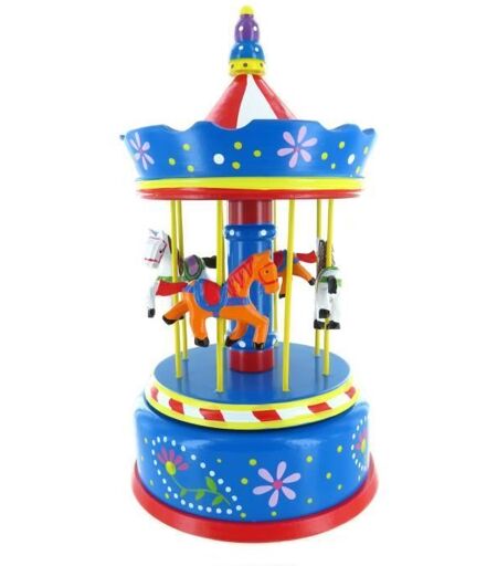 Ce grand carrousel musical miniature rouge et bleu est doté d'un mécanisme musical traditionnel à ressort de 18 notes. Les chevaux entièrement peints à la main tournent au son de la mélodie après remontage du mécanisme musical par le chapiteau. Dimensions: 16 X 16 X 30 cm. Poids emballé: environ 1600g. ...