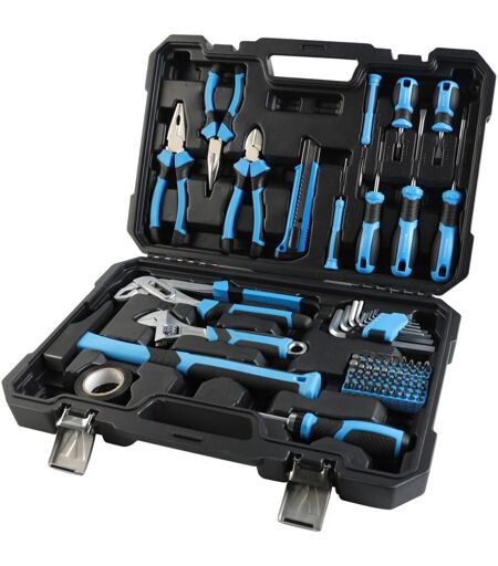 Malette à outils plastique outillage assortis 85 pièces 1 Pince bec long gainée 150 mm 1 Pince universelle gainée 175 mm 1 Pince coupante diagonale gainée 150 mm 2 Tournevis de précision 1 Cutter rétractable 18 mm 5 Tournevis assortis 6 x 38 - 6 x 100 - PH2 x 38 - PH1 x 75 - PH2 x 100 1 Porte-embouts 60 Embouts de vissage assortis 1 Rouleau d'adhésif électricité 1 Clé à molette gainée 200 mm 9 Clés mâles 1.5 - 2 - 2.5 - 3 - 4 - 5 - 6 - 8 - 10 mm 1 Marteau menuisier 25 mm 1 Pince multiprise gainée 250 m Contient du bois : non ...