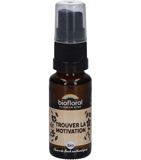 Complément alimentaire à utiliser dans le cadre d’une alimentation variée, équilibrée et d’un mode de vie sain.À la recherche d'un allié naturel pour raviver votre motivation et retrouver la force intérieure qui vous anime ?Découvrez le Complexe Trouver la Motivation bio en spray de Biofloral, une synergie unique de 7 Fleurs de Bach biologique. Il est inspiré de la méthode originale du Dr. Edward Bach et fabriqué de manière artisanale pour garantir sa qualité.Ce complexe Trouver la Motivation comprends les fleurs de Bach :• N°12 Gentian (Gentiane) : pour retrouver optimisme, confiance et persévérance.• N°13 Gorse (Ajonc) : pour réveiller l’espoir et ne pas se laisser submerger par le découragement.• N°17 Hornbeam (Charme) : pour ne pas être lassé des journées routinières.• N°36 Wild Oat (Avoine Sauvage) : elle clarifie votre vocation et renforce votre désir d’agir, dissipant l’incertitude.• N°11 Elm (Orme) : pour gérer les grands projets sans se décourager.• N°37 Wild Rose (Eglantier) : pour retrouver l'enthousiasme et l'envie d'entreprendre.• N°23 Olive (Olivier) : pour dissiper la sensation de lassitude et encourager un regain d'élan et de joie.Pour qui est ce complexe ?Le Complexe Trouver la Motivation s'adresse à ceux qui cherche à retrouver leur vocation et à embrasser chaque jour avec enthousiasme. Si vous avez du mal à vous lancer, à trouver votre chemin dans la vie, ou si vous vous sentez souvent découragé, ce complexe peut vous aider à retrouver votre élan intérieur.Changements positifs :• Vous aide à retrouver espoir et à ne pas vous laisser abattre.• Vous permet de découvrir plus clairement votre vocation.• Favorise l'optimisme, la confiance et la persévérance en vous.• Vous encourage à passer à l'action avec enthousiasme.• Vous aide à surmonter l'ampleur des tâches avec assurance.• Réveille en vous l'enthousiasme et l'envie d'entreprendre.Dans quel cas l’utiliser ?• Si vous avez du mal à vous motiver et à trouver votre voie.• Si vous vous sentez perdu dans la vie et avez besoin de clarté.• En période de transition, comme un changement de carrière ou une nouvelle aventure.• Si vous souhaitez retrouver votre force intérieure et votre passion pour la vie.Passez à l'action, trouvez votre vocation et embrassez chaque jour avec enthousiasme grâce au Complexe Trouver la Motivation. Dites adieu à la procrastination et embrassez une vie pleine de détermination et de passion.IngrédientsCognac (27% vol.)**, préparation aux Fleurs de Bach* : Gentian* (Gentiana amarella), Gorse* (Ulex europaeus), Hornbeam* (Carpinus betulus), Wild Oat* (Bromus ramosus), Elm* (Ulmus procera), Wild Rose* (Rosa canina), Olive* (Olea europaea) à 1/240e selon la méthode originale du Dr Bach.*Ingrédients issus de l’agriculture biologique et **biodynamique.Conseils d'utilisation2 pulvérisations sous la langue ou dans 1 verre d’eau, 4 fois par jour, pendant 1 à 4 semaines.Précautions d'emploiNe pas dépasser la dose recommandée. Ne se substitue pas à un régime alimentaire... ...
