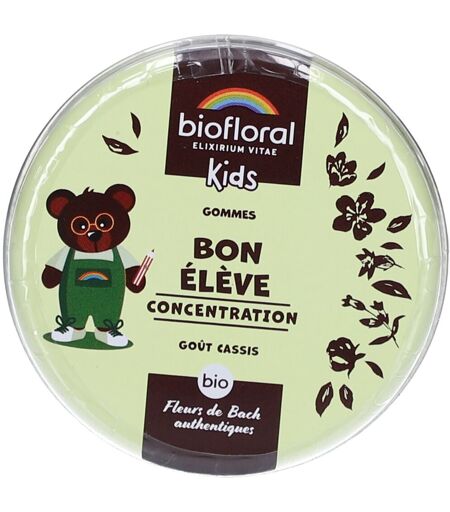 Complément alimentaire à utiliser dans le cadre d’une alimentation variée, équilibrée et d’un mode de vie sain.Un compagnon de confiance pour les jeunes élèvesLe monde de l'éducation est plein de défis et les enfants peuvent souvent être submergés par les attentes et les responsabilités.Ce complexe Bon Élève Bio en gommes est conçu spécialement pour aider les enfants qui cherchent à être attentif et leur apporter rigueur dans l'apprentissage, les soutenant dans leur parcours éducatif grâce aux élixirs floraux.Un allié quotidien pour un meilleur apprentissage :Si votre enfant a besoin de se focaliser et d'acquérir plus de discipline dans son travail, ce complexe est un allié idéal. Il aide l'enfant à être plus réceptif et à mieux appréhender ses responsabilités, permettant ainsi une amélioration de l'écoute et de l'apprentissage.Fabriqué de manière artisanale et inspiré de la méthode originale du Dr. Edward Bach, ce complexe est essentiel pour soutenir le bien-être émotionnel des enfants. Dr. Bach, de nationalité britannique, a prouvé que les essences florales ont une influence positive sur l'harmonie émotionnelle.Les bienfaits de chaque fleur :• N°19 Larch (Mélèze) : Une fleur qui invite l’enfant à se relier à sa propre valeur et à s’ouvrir à ses capacités avec confiance.• N°28 Scleranthus (Scléranthe) : Traditionnellement associée à l’harmonisation intérieure, Scléranthe soutient les moments de choix et de recentrage.• N°11 Elm (Orme) : Orme accompagne les périodes où l’enfant peut se sentir dépassé, en l’encourageant à retrouver son propre rythme face aux défis.• N°35 White Chestnut (Marronnier Blanc) : Associée à la recherche de clarté dans les périodes de pensées répétitives.• N°9 Clematis (Clématite) : Fleur symbolique de l’ancrage dans le présent et de la connexion à l’instant vécu.Quand l'utiliser ?Ce complexe floral est adapté à toutes les situations quotidiennes où l'enfant a besoin de soutien pour rester focalisé et motivé.Il est particulièrement utile quand l'enfant se sent débordé par ses tâches et responsabilités et aide à maintenir un environnement d'apprentissage calme et productif.Changements positifs :• Encourage une atmosphère d'apprentissage sereine et concentrée.• Favorise l'équilibre émotionnel et la confiance en soi.• Apporte une paix intérieure.Grâce à ce complexe floral, vos enfants pourront aborder leurs responsabilités et leur apprentissage avec une nouvelle confiance et une meilleure assiduité, favorisant ainsi leur succès éducatif.IngrédientsGomme arabique*, Sirop d’Agave*, Arôme naturel de cassis*, Fleurs de Bach* : Larch* (Larix decidua), Scleranthus* (Scleranthus annuus), Elm* (Ulmus procera), White Chestnut* (Aesculus hippocastanum), Clematis* (Clematis vitalba).*Ingrédients issus de l’agriculture biologique.Conseils d'utilisationPrendre 1 gomme 4 fois par jour, ou en cas de besoin, toutes les 15 minutes.Précautions d'emploiNe pas dépasser la dose recommandée. Ne se substitue pas à un régime alimentaire varié et... ...