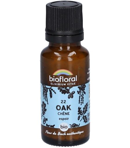 Complément alimentaire à utiliser dans le cadre d’une alimentation variée, équilibrée et d’un mode de vie sain.Le souffle revigorant de l’endurance et de l’espoirVous reconnaissez-vous dans une combativité incessante, gérez-vous votre vie familiale et professionnelle avec une ardeur inépuisable, mais oubliez-vous souvent de faire une pause ?Dans l’effervescence d’un monde toujours en mouvement, la Fleur de Bach 22 Oak - Chêne en granules bio de Biofloral se révèle salutaire, invitant à un moment de relâche et de régénération pour vos esprits combattifs. Elle permet un lâcher-prise nécessaire pour que vous puissiez réellement respirer.Pratique, ce format vous permet de profiter des Fleurs de Bach sous forme de granules sans alcool. Inspirée de la méthode originale du Dr Edward Bach et formulée de façon artisanale, cette préparation est une option idéale pour ceux qui choisissent de ne pas consommer d’alcool. Ce britannique a mis en lumière le rôle essentiel des essences florales pour le bien-être émotionnel. Il a ainsi identifié 38 fleurs, chacune ciblant des émotions distinctes.Les bénéfices de la Fleur de Bach Oak - Chêne :La Fleur Oak - Chêne contribue à alléger la surcharge émotionnelle et favorise une vie plus équilibrée.Changements positifs :• Prise de recul sur soi, vous permettant de vivre l’instant présent avec plus de légèreté.• Aide à soutenir une réflexion clairvoyante et bienveillante, facilitant une meilleure navigation à travers les obligations quotidiennes.• Contribue à la sérénité d'esprit.Donnez-vous l’opportunité de ressentir une harmonie renouvelée avec la Fleur de Bach 22 Oak - Chêne.Explorez un nouveau chemin vers le bien-être émotionnel grâce aux élixirs floraux, une approche douce, subtile et parfaitement adaptée à vos besoins émotionnels.IngrédientsSucre de canne*, imprégné de préparation à la Fleur de Bach* : Oak (Quercus robur) à 1/240e selon la méthode originale du Dr Bach.*Ingrédients issus de l’agriculture biologique.Conseils d'utilisation3 à 4 granules à laisser fondre dans la bouche ou dans un verre d’eau. 4 fois par jour, pendant 1 à 4 semaines.Précautions d'emploiNe pas dépasser la dose recommandée. Ne se substitue pas à un régime alimentaire varié et équilibré ni à un mode de vie sain. Tenir hors de la portée des jeunes enfants.Poids net19,5 gAdresse du FabricantLaboratoire Biofloral43260 St-Pierre-EynacFrance ...
