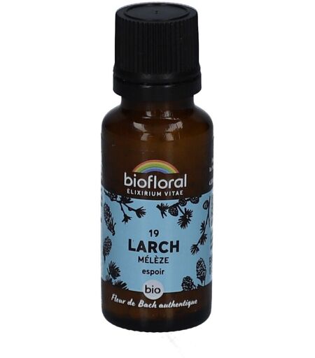 Complément alimentaire à utiliser dans le cadre d’une alimentation variée, équilibrée et d’un mode de vie sain.La fleur du courage et de l’espoirVous sentez-vous parfois submergé par le doute, paralysé par la peur de l'échec, et manquez-vous de la confiance nécessaire pour oser prendre des risques ?Le Mélèze, dans la nature, est un arbre robuste et résilient, illustrant parfaitement la force et la détermination. De même, la Fleur de Bach 19 Larch - Mélèze en granules bio vous aide à embrasser votre propre force intérieure et à surmonter les obstacles avec détermination et sérénité.Pratique, ce format vous permet de profiter des Fleurs de Bach sous forme de granules sans alcool. Inspirée de la méthode originale du Dr Edward Bach et formulée de façon artisanale, cette préparation est une option idéale pour ceux qui choisissent de ne pas consommer d’alcool. Ce britannique a mis en lumière le rôle essentiel des essences florales pour le bien-être émotionnel. Il a ainsi identifié 38 fleurs, chacune ciblant des émotions distinctes.Les avantages de la Fleur de Bach 19 Larch - Mélèze :La Fleur de Bach Larch - Mélèze intervient dans votre quête d’espoir et de courage, contribuant à une perception de soi plus positive et à une attitude plus déterminée.Changements positifs:• Participe à retrouver la confiance et le courage nécessaires pour surmonter les obstacles.• Aide à voir les échecs potentiels non pas comme des barrières, mais comme des opportunités d'apprentissage.• Contribue à maintenir un état d’esprit optimiste et déterminé, encourageant une vision positive de soi et de ses capacités.La Fleur de Bach 19 Larch - Mélèze vous invite à explorer votre potentiel, en encourageant un état d’esprit courageux et positif.Vivez votre vie pleinement et en harmonie grâce aux élixirs floraux, une voie douce et respectueuse vers le bien-être émotionnel.IngrédientsSucre de canne*, imprégné de préparation à la Fleur de Bach* : Larch (Larix decidua) à 1/240e selon la méthode originale du Dr Bach.*Ingrédients issus de l’agriculture biologique.Conseils d'utilisation3 à 4 granules à laisser fondre dans la bouche ou dans un verre d’eau. 4 fois par jour, pendant 1 à 4 semaines.Précautions d'emploiNe pas dépasser la dose recommandée. Ne se substitue pas à un régime alimentaire varié et équilibré ni à un mode de vie sain. Tenir hors de la portée des jeunes enfants.Poids net19,5 gAdresse du FabricantLaboratoire Biofloral43260 St-Pierre-EynacFrance ...