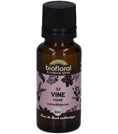 Complément alimentaire à utiliser dans le cadre d’une alimentation variée, équilibrée et d’un mode de vie sain.La fleur de la bienveillance équilibréeVous arrive-t-il de sentir que votre vision des choses est la seule acceptable, et que votre manière de faire ou de penser est la meilleure ?La Fleur de Bach 32 Vine - Vigne en granules bio de Biofloral vous accompagne durant ces instants. Elle participe à la prise de recul, vous aidant à envisager les autres perspectives avec bienveillance et compréhension.Dans un monde où chacun porte ses convictions, la Fleur de Bach Vine est comme une brise légère qui rappelle la beauté de la diversité. Elle souligne l'importance de la tolérance et du respect d'autrui, permettant des échanges enrichissants et ouverts.Pratique, ce format vous permet de profiter des Fleurs de Bach sous forme de granules sans alcool. Inspirée de la méthode originale du Dr Edward Bach et formulée de façon artisanale, cette préparation est une option idéale pour ceux qui choisissent de ne pas consommer d’alcool. Ce britannique a mis en lumière le rôle essentiel des essences florales pour le bien-être émotionnel. Il a ainsi identifié 38 fleurs, chacune ciblant des émotions distinctes.Les avantages de la Fleur Vine - Vigne :La Fleur Vine - Vigne est là pour vous guider dans votre quête de relations harmonieuses, tempérant une nature dominante pour des interactions respectueuses et bienveillantes. Elle joue un rôle dans la modération de vos impulsions directrices, vous encourageant à adopter une attitude plus conciliante.Changements positifs :• Joue un rôle dans l'adoucissement des attitudes rigides, vous invitant à apprécier la valeur des opinions divergentes.• Aide à promouvoir le respect mutuel, enrichissant vos relations interpersonnelles.• Soutient votre démarche vers une communication équilibrée, mettant en avant l'écoute et la compréhension.• Participe à la valorisation de la diversité d'opinions, offrant une vision plus large et ouverte du monde.Ouvrez-vous à la richesse des échanges avec la Fleur de Bach 32 Vine - Vigne.Explorez la bienveillance et le respect à travers les élixirs floraux, une approche douce qui répond à vos émotions.IngrédientsSucre de canne*, imprégné de préparation à la Fleur de Bach* : Vine (Vitis vinifera) à 1/240e selon la méthode originale du Dr Bach.*Ingrédients issus de l’agriculture biologique.Conseils d'utilisation3 à 4 granules à laisser fondre dans la bouche ou dans un verre d’eau. 4 fois par jour, pendant 1 à 4 semaines.Précautions d'emploiNe pas dépasser la dose recommandée. Ne se substitue pas à un régime alimentaire varié et équilibré ni à un mode de vie sain. Tenir hors de la portée des jeunes enfants.Poids net19,5 gAdresse du FabricantLaboratoire Biofloral43260 St-Pierre-EynacFrance ...
