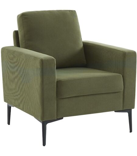 Sweeek - Fauteuil en velours côtelé kaki foncé - Bjorn - Canapé 1 place fixe droit pieds métal