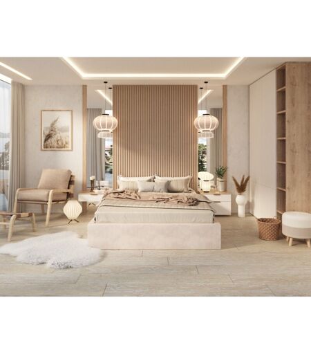 Nova Confort - Lit coffre Orlane 160 x 200 cm avec sommier à lattes relevable Beige Clair