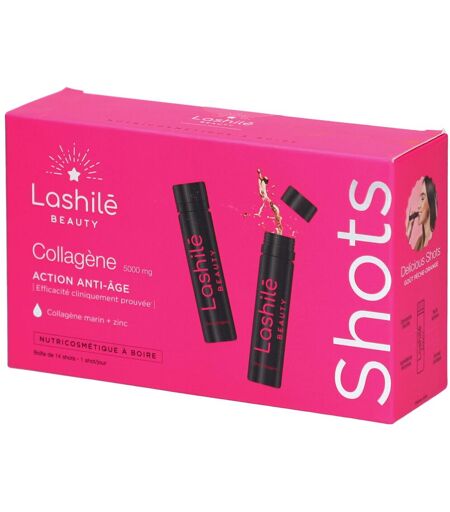 LASHILE BEAUTY Lashilé Beauty - Shots Collagène 5000 mg Action Anti-âge Nutricosmétique à boire Programme 14 Jours marin type 1 et 3, Zinc Solution Orale 210 ml