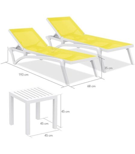Poolstar - Pack mykonos + Lot de deux transats Blanc/Jaune & Table d'appoint