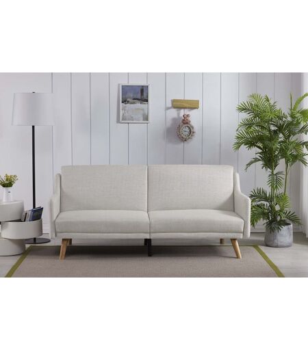 Craquez pour ce canapé scandinave design aux lignes épurées. En plus d'être moderne et tendance il est convertible et vous permet d'offrir un couchage à vos invités. Son coloris gris clair et ses pieds en bois s'accordent à merveille à tous les styles d'intérieurs et vous permet de donner une touche de modernité à votre salon. Caractéristiques techniques : Couleur principale : Gris clair Nombre de places : 3 Revêtement : tissu polyester Structure : bois massif (eucalyptus)+ panneaux à particules Assise : Une couche inférieure de mousse recyclé de 50kg/m3 et d'une couche supérieure mousse 25 kg / m3 + ouate 150g/m134 Dossier : Une couche de mousse inférieure de 50 kg/m3 et supérieure de 25 kg/m3 + ouate 150 g/m134 Nombre de pieds : 6 Poids maximum supporté : 300 kg Entretien : Nettoyez le canapé qu'en surface, avec une éponge ou un linge bien essoré, et jamais mouillé, séchez-le vite à l'aide d'un séchoir à cheveux, et effectuez toujours un test préalable sur un coin non en vue. Pour déloger la poussière privilégiez l¿aspirateur. Dimensions : Total (l x P x h) : 185 x 89 x 82 cm Dimension couchage : 185 x 107 x 40 cm Hauteur pied : 20 cm Hauteur assise : 40 cm Profondeur assise : 50,5 cm Hauteur dossier : 82 cm Poids canapé : 38 kg Conditionnement : Le produit est conditionné dans 2 colis de : 109 x 24 x 88 cm / 22 kg Montage facile, une notice est fournie. * Livraison pas de porte * Garantie 2 ans ...