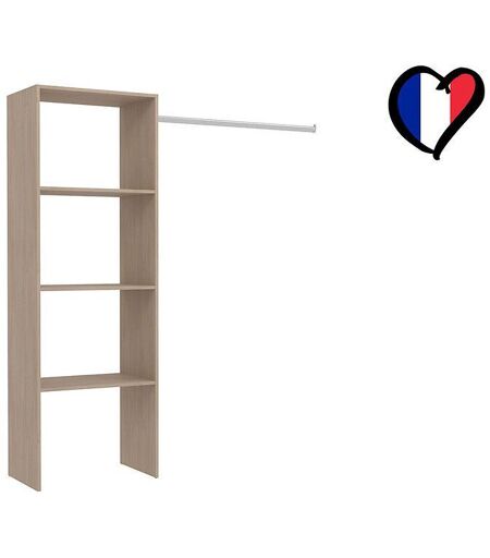 Ce dressing compacte fabriqué en France sera parfait pour ranger, organiser votre garde-robe comme il se doit grâce à ses étagères et sa penderie. Il peut se fixer facilement au mur ou vous pouvez aussi le combiner avec un autre module de dressing. Sa taille est idéale pour s'adapter à des petits espaces tout en offrant pas mal de rangements. Son style épuré permettra de s'adapter à tous les styles d'intérieurs. Caractéristiques techniques Couleur principale: Bois Structure du meubles : Panneau de particules 15 mm Type de finitions : Mélaminé Nombre de colonnes : 1 Types de rangements: 3 étagères, 1 penderie 3 étagères de 57 cm 1 tubes de penderies de 100cm Matière tube penderie : Acier galvanisé Extensible : non Fabriqué en France Entretien Utiliser uniquement un chiffon doux légèrement humide. Ne pas utiliser de solvant. Dimensions Dimensions totales : 159,8 x 39,9 x 180,4 cm Dimensions des colonnes 180 x 60 x 40 cm Dimensions des étagères : 56,8 x 40cm Dimensions des tubes de penderie : 100 cm Epaisseur des panneaux : 15 mm Poids total : 24,9 kg Conditionnement Produit livré dans 1 carton. Montage facile, notice incluse. Colis 1 : 190,3 x 41,2 x 8,4 cm / 24,9 kg * Livraison pas de porte offerte * Garantie 2 ans ...