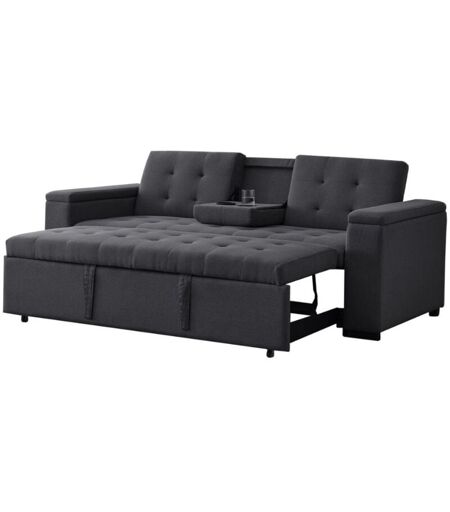 Description générale Ce canapé convertible Noho allie modernité et praticité. Sa couleur gris foncé et son design contemporain en font une pièce tendance qui s'intègre parfaitement dans tout salon. Modulable, il se transforme facilement en canapé classique, fauteuil relax ou lit 2 places. Son dossier central rabattable est idéal pour poser des boissons, offrant un confort optimal lors de vos soirées cinéma. Spécifications techniques Nombre de places : 3 Couleur : Gris foncé Revêtement : Tissu de lin Piètement : Plastique Structure : Bois massif (eucalyptus) et plywood Suspension dossier : Sangles Suspension assise : Ressorts Assise : Mousse de 20 kg/m3 Dossier : Mousse de 18 kg/m3 Convertible : Oui Poids maximum supporté : 180 kg Compatibilité et accessoires Accessoires inclus : Aucun Installation Facile à assembler Instructions fournies Utilisation Canapé idéal pour le salon Transformation rapide en lit pour invités Entretien facile : nettoyage avec un chiffon humide Autres ...