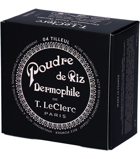 Depuis 1881, la poudre libre dermophile de T. LeClerc incarne l'expertise du maquillage professionnel. Cette poudre culte à base d'amidon de riz, créée par un pharmacien visionnaire, s'est transmise de génération en génération pour rendre chacun plus beau naturellement.La formule iconique, préférée des maquilleurs professionnels, est aujourd'hui perfectionnée après des années de développement pour encore plus de sensorialité et encore plus de performance. Sa texture légère et soyeuse se fond dans la peau pour un fini naturel sans effet maquillé. Cette poudre unifie et matifie la peau tout en préservant son éclat naturel. Elle unifie et atténue les imperfections pour un teint sublime tout au long de la journée. Cette poudre est plus qu'un simple maquillage, elle agit également comme un soin. Elle maintient l'hydratation naturelle de la peau, régule la sécrétion de sébum, réduit les points noirs, protège et renforce la barrière hydrolipidique. Cette poudre naturelle et végétalienne est conçue pour répondre aux besoins des peaux les plus sensibles, sans compromis sur la performance ou le confort. Elle est disponible dans une large gamme de couleurs et convient à toutes les carnations.L'emblématique et élégante boîte a été rendue encore plus pratique. La Maison perpétue l'expertise de son fondateur et continue d'écrire l'histoire de la beauté intemporelle, avec une poudre libre plus innovante que jamais.Informations importantes :✔ Lisse et matifie la peau✔ Unifie le teint✔ Réduit les imperfections visibles✔ Maintient l'éclat naturel du teint✔ Ne dessèche pas la peau et maintient son niveau d'hydratation naturelle✔ Réduit la sécrétion de sébum✔ Assure que le maquillage-dure plus longtempsIndication :04 Tilleul : la fameuse teinte verte correctrice pour neutraliser les rougeurs.Application:Prélever un peu de poudre à l'aide du pinceau poudre n° 01 et appliquer en léger nuage sur l'ensemble du visage.Utilisée seule, la poudre apporte une correction naturelle, pour un teint uniforme. En touche finale après le fond de teint, elle fixe le maquillage et le fait tenir plus longtemps, tout en restant parfaitement confortable au toucher.Pour les retouches au cours de la journée, choisissez le format voyage ou la poudre compacte dans la teinte correspondante. Appliquez un peu de poudre sur la zone T (front, nez, menton) en tamponnant légèrement avec la houppette pour absorber l'excès de sébum. Vous retrouverez ainsi un teint frais et impeccable en un rien de temps.Ingrédients :AMIDON DE RIZ, MICA, STEARATE DE ZINC, ILLITE, SILICA, KAOLIN, MICROCRYSTALLINE CELLULOSE, DIISOSTEARYL MALATE, ZINC PCA, ETHYLHEXYLGLYCERIN, SODIUM HYALURONATE, HELIANTHUS ANNUUS (SUNFLOWER) SEED OIL, SODIUM DEHYDROACETATE, PARFUM (FRAGRANCE), TOCOPHEROL, [+/- : CI 77491 (OXYDES DE FER), CI 77492 (OXYDES DE FER), CI 77499 (OXYDES DE FER), CI 77007 (ULTRAMARINES), CI 19140 (LAQUE JAUNE 5), CI 73360 (LAQUE ROUGE 30), CI 42090 (LAQUE BLEUE 1), CI 77742 (VIOLET DE MANGANÈSE), CI 15850 (ROUGE... ...