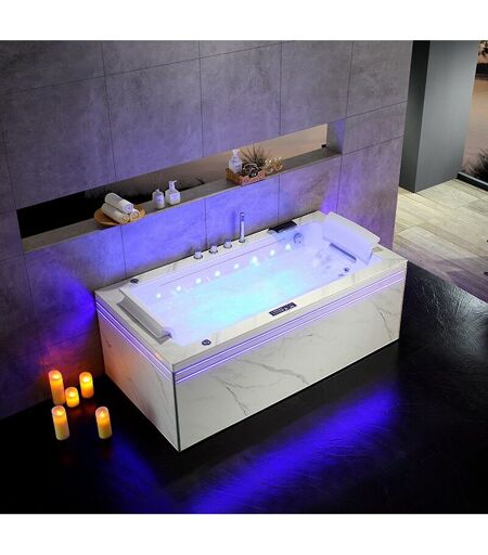 Description générale La baignoire balnéo thérapeutique Archipel® allie design moderne et fonctionnalité. Avec des dimensions extérieures de 1700 x 860 x 630 mm, elle est dotée de 3 tabliers effet marbre en acrylique et polymères, intégrant un double bandeau LED. Cette baignoire offre une expérience de détente avec ses 40 jets de massage, dont 24 jets combinant eau et air pour un effet venturi, et 16 jets d'air lumineux. Spécifications techniques Dimensions : 1700 x 860 x 630 mm Volume d'eau : Min 285L / Max 335L Puissance totale : 4000 Watts (220V - 20A - 3x2.5mm²) 2 pompes de massage LX WHIRLPOOL® de 1100 Watts (1.5HP) 1 blower air de 300W Réchauffeur d'eau intégré de 1500 Watts Chromothérapie LED intérieure avec 16 LEDs Compatibilité et accessoires Mitigeur thermostatique Archipel® Bec verseur design de type Cascade en inox Radio FM et Bluetooth intégrés Installation Les arrivées d'eau (chaude et froide) et l'alimentation électrique doivent être réalisées à 30 cm de hauteur le long ...