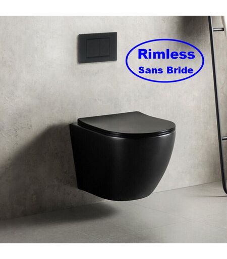 Rue Du Bain - Cuvette wc Suspendu avec Abattant Céramique Noir Brillant 49x36cm Cort