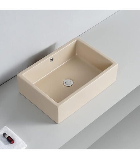 Rue Du Bain - Vasque pour salle de bain Rectangulaire - Céramique Beige Mat - 51x36 cm - Line