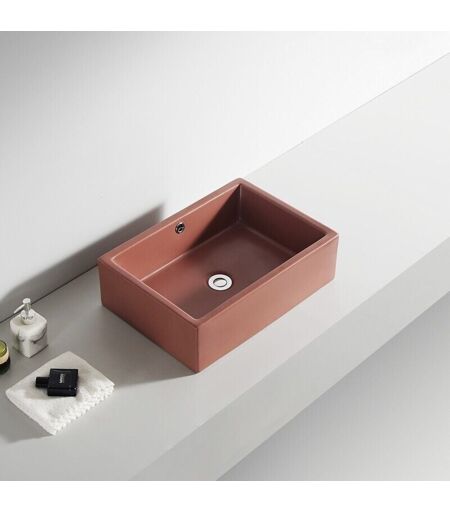 Rue Du Bain - Vasque pour salle de bain Rectangulaire Céramique Terracotta 51x36 cm Line