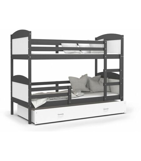 Kids Literie - Lit Superposé Matis 90x190 (Sans Matelas) Gris - blanc Livré avec le sommiers et tiroir.