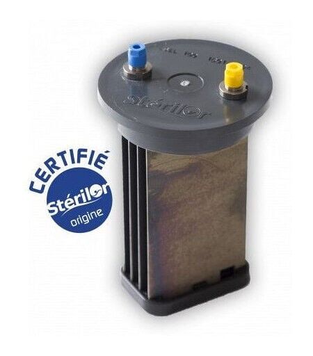 DESCRIPTION GÉNÉRALE Cellule de remplacement électrode titane SYSTEM7 - STERILOR100M3 pour électrolyseur Stérilor 100 m3, 7 plaques. Les appareils de traitement de l'eau Stérilor sont une des marques les plus répandues sur le marché français. Gage de qualité et de durabilité, Stérilor propose une large gamme de pièces détachées pour leurs électrolyseurs de sel. Cette cellule de rechange pour électrolyseur est une pièce certifiée de la marque STERILOR. SPÉCIFICATIONS TECHNIQUES Type : Cellule de remplacement Matériau : Titane Modèle : SYSTEM7 - STERILOR100M3 Capacité : Pour électrolyseur Stérilor 100 m3 Nombre de plaques : 7 ...