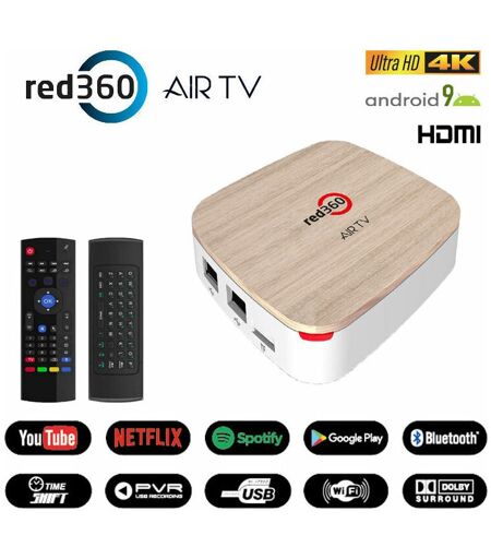 Hdme - android smart box ott player red 360 4K airtv + clavier / telecommande sans fil