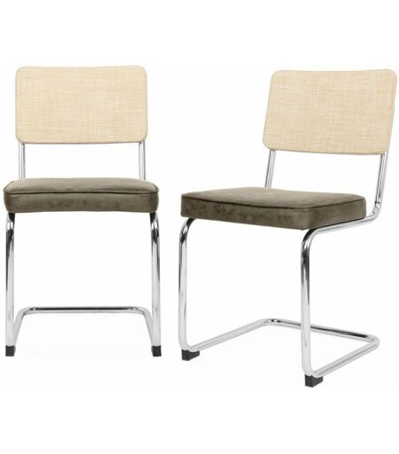 Alice's Garden - 2 chaises cantilever - Maja - tissu kaki et résine effet rotin. 46 x 54.5 x 84.5cm