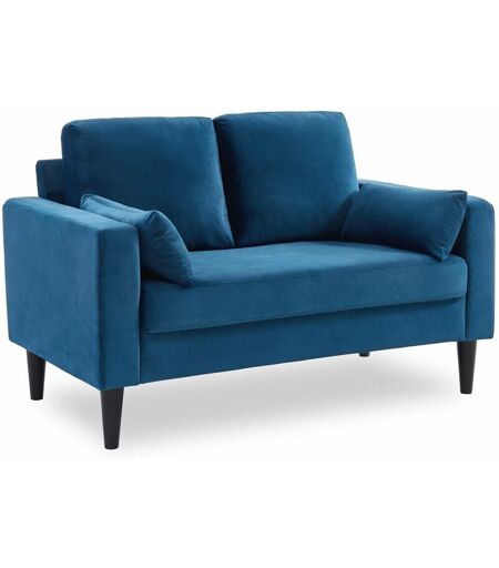 Sweeek - Canapé en velours - Bjorn - Canapé 2 places fixe droit pieds bois d'hévéa effet bois de noyer Velours Bleu