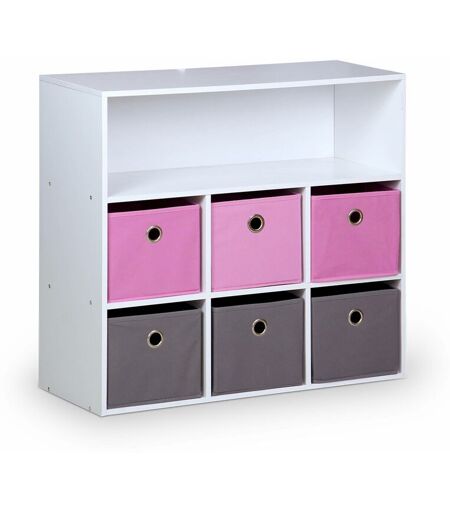 Sweeek - Meuble de rangement pour enfant. blanc - Camille - avec 7 compartiments et 6 paniers gris et roses
