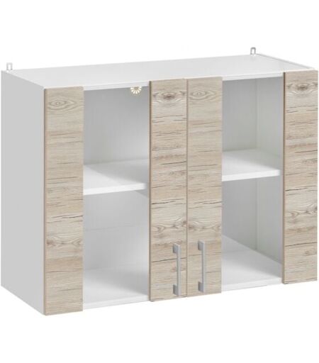 CUISINEANDCIE Meuble haut de cuisine Eco Noyer Blanchi 2 portes vitrées l 80 cm