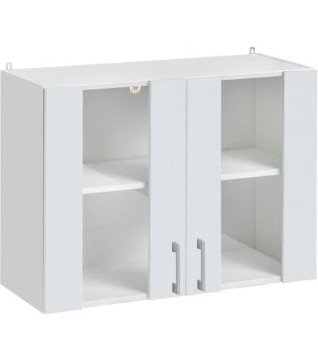 CUISINEANDCIE Meuble haut de cuisine Eco Blanc Brillant 2 portes vitrées l 80 cm