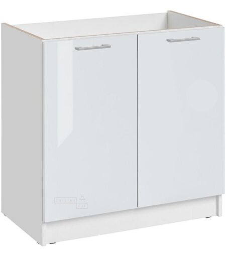 CUISINEANDCIE Meuble sous-évier Eco Blanc Brillant 2 portes l 80 cm
