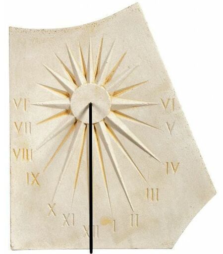 Cadran solaire en pierre naturelle fabriqué en France, à accrocher au mur. Fourni avec une tige en métal pour indiquer l'heure. - Largeur : 33 cm Hauteur : 42 cm Poids : 5 Kg ...