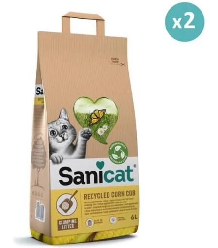 Litière Sanicat agglomérante à base de rafle de maïs, idéale pour les chats. Sa capacité de 12L assure une absorption efficace et un contrôle des odeurs. Optez pour une litière végétale et respectueuse de l'environnement. ...
