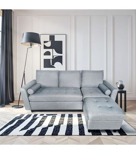 Concept-Usine Canapé 3 Places En Velours Avec Pouf Gris Clair Coventry