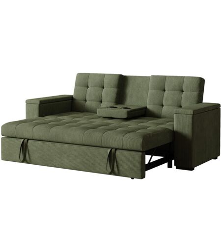 CONCEPT-USINE Canapé 3 places convertible accoudoirs amovibles vert velours côtelé NOHO