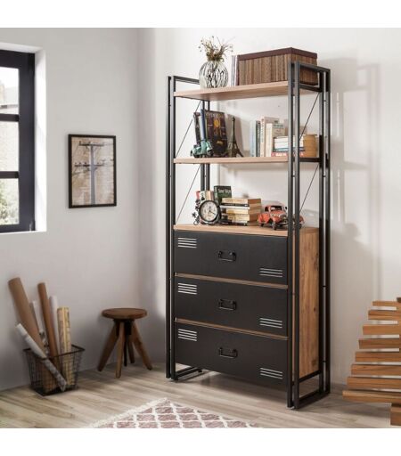 Concept-Usine Bibliothèque Industrielle Avec Tiroirs Tali - Bois Et Noir