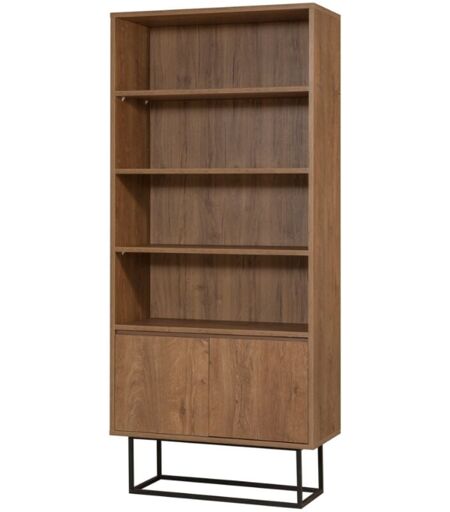 Bibliothèque industrielle bois et noir Ajoutez une touche d'élégance à votre intérieur avec notre bibliothèque en bois et pieds en métal. Elle offre six étagères, dont deux avec portes, pour un rangement optimal de vos livres et objets de décoration. La finition couleur bois apporte chaleur et sophistication, tandis que les pieds en métal assurent une stabilité et un style moderne. Caractéristiques techniques Couleur principale : Noyer Couleur secondaire : Noir Matière de la structure : Panneaux de particules Finition : Mélaminé Pied en métal Type de rangements : 4 étagères + 2 étagères avec portes Poids total : 48 kg Nombre de pieds : 1 Entretien : Nettoyer avec un chiffon légèrement humide, éviter les produits contenant des solvants. Dimensions Dimensions totales : 164 x 41 x 38 cm Hauteur du pied : 22 cm Dimensions des portes : 80 x 33 x 36 cm Conditionnement Le produit est conditionné dans 3 colis : 41 x 164 x 11 cm / 33 kg 87 x 41 x 11 cm / 13 kg 16 x 35 x 16 cm / 2 kg Montage ...