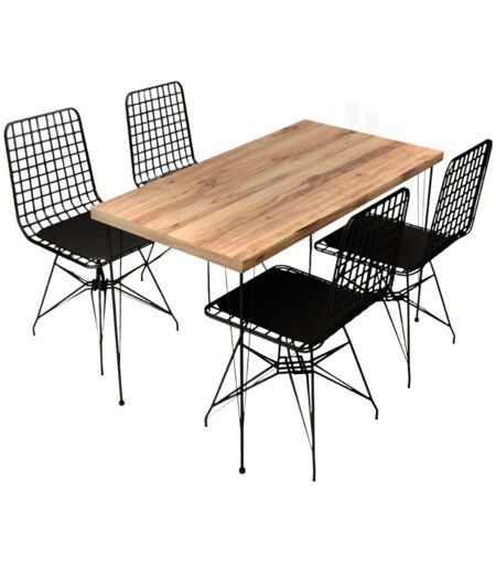 Concept-usine - square - Ensemble repas table et chaises industriel bois et noir