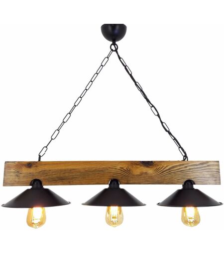 Concept-Usine Suspension Rustique 3 Lampes Bois Et Noire Enola