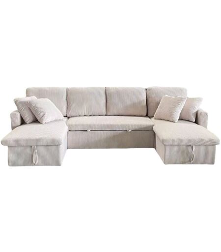 Concept-usine - mahé - Canapé panoramique convertible 4 places en velours côtelé avec coffre - beige