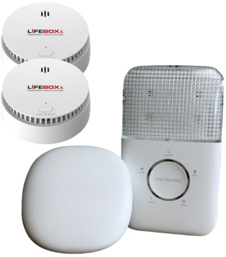 Kit d'alarme pour malentendants, Alerte visuelle et vibrante en cas d'incendie ou de fuite de gaz Une alarme pensée pour la sécurité des personnes sourdes et malentendantes Le kit d'alarme PMR (Personne à Mobilité Réduite) est un dispositif innovant permettant aux personnes malentendantes d'être avertis efficacement en cas de danger. Il fonctionne avec les détecteurs de fumée interconnectés Lifebox, le système active une lumière stroboscopique puissante et un coussin vibrant, offrant une réponse immédiate même pendant le sommeil. Fonctionnement et compatibilité Interconnexion intelligente Ce kit ne détecte pas les dangers directement. Il s'intègre dans un réseau d'alarmes interconnectées sans fil, et réagit aux alertes des détecteurs couplés via : Appairage radio sécurisé à 868 MHz (jusqu'à 100 m) ou 925 MHz (jusqu'à 500 m) Signal lumineux : rouge (danger), jaune (défaut), vert (alimentation), bleu (appairage) Double alimentation pour une sécurité continue Alimentation principale : ...