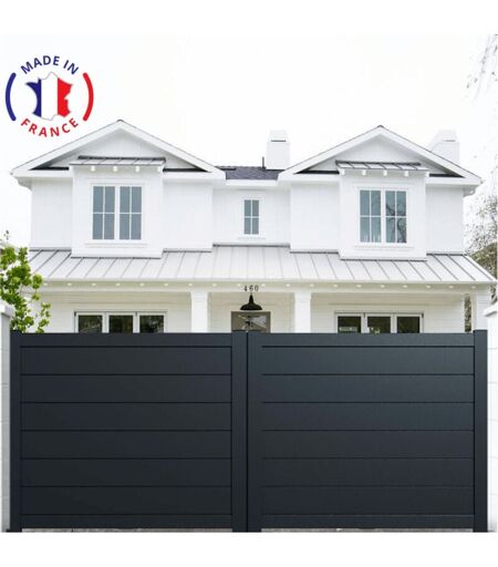 Caractéristiques du portail aluminium coulissant plein en kit Le portail aluminium coulissant plein coulisse manuellement vers la droite ou vers la gauche, selon vos besoins. Ce modèle, particulièrement adapté aux besoins de grandes dimensions, n'empiète ni sur votre jardin, ni sur la rue. Le produit s'adapte parfaitement à toutes les dimensions entre piliers comprises entre : 2950 mm et 3050 mm pour le modèle en 3000mm 3450 mm et 3550 mm pour le modèle en 3500mm 3950 mm et 4050 mm pour le modèle en 4000mm La hauteur indiquée correspond à la hauteur du haut du montant au sol une fois posé. Résistant Certifié Qualicoat et Qualimarine, ce portail aluminium coulissant plein ne craint ni la rouille, ni la corrosion. Robuste, il ne se déformera pas dans le temps et ne requière que peu d'entretien à l'année. Reversible Le sens d'ouverture du portail est réversible : vous pouvez assembler votre portail de manière à le faire coulisser vers la gauche ou vers la droite en fonction de vos ...